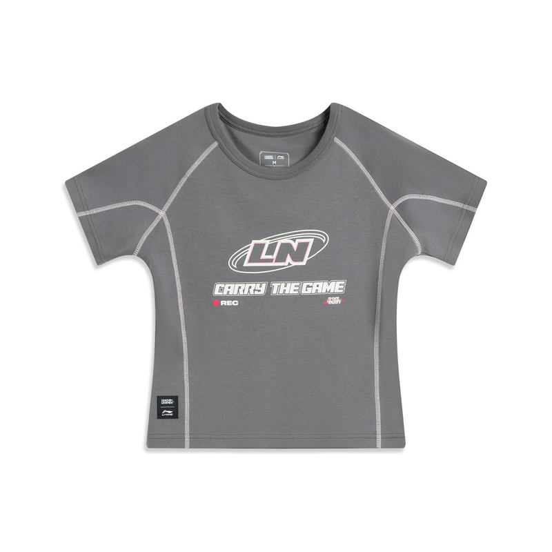LI-NING李宁2025女子短袖文化衫针织无领短TAHSV636-2