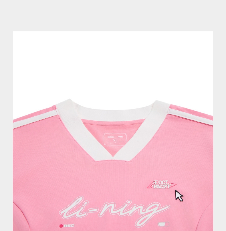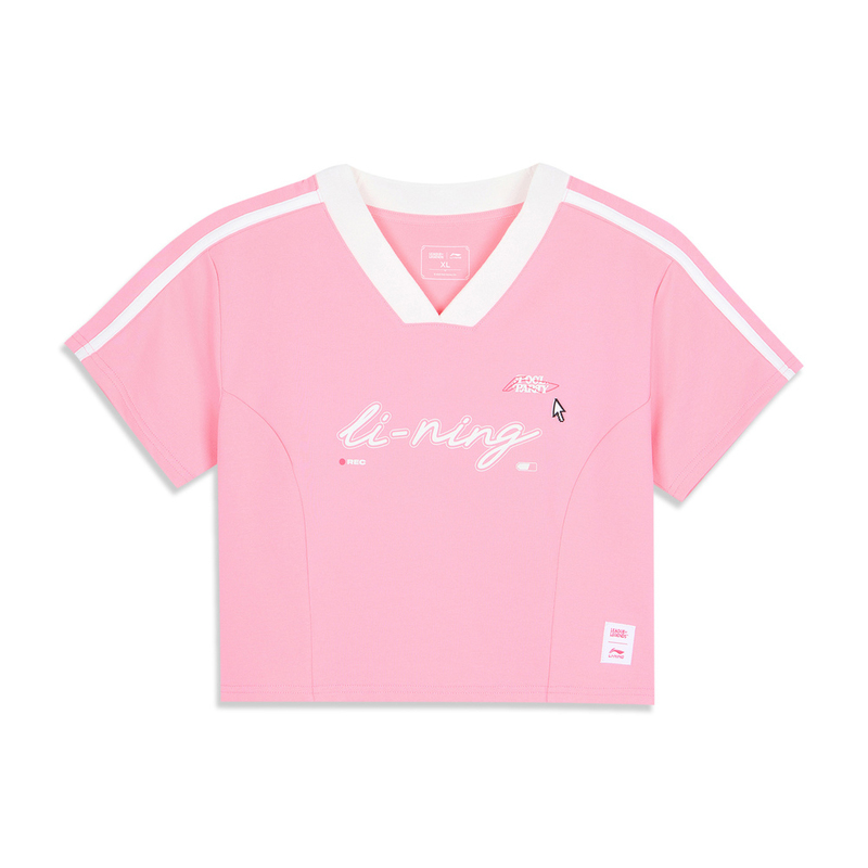 • LI-NING李宁2025女子短袖文化衫针织无领短TAHSV638-1