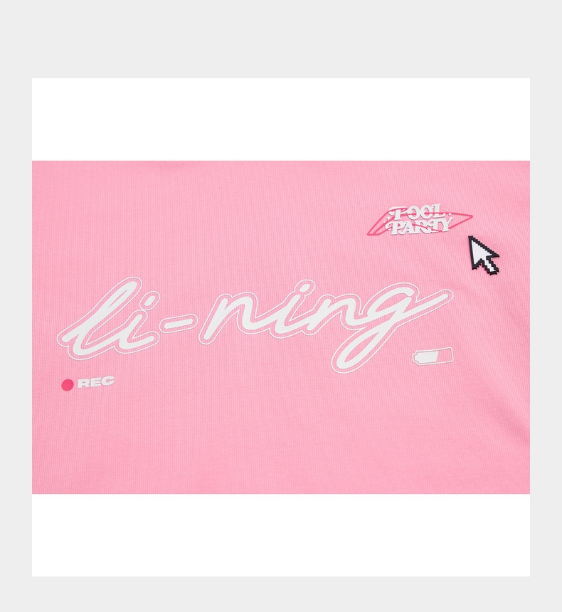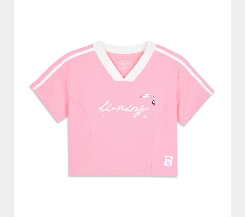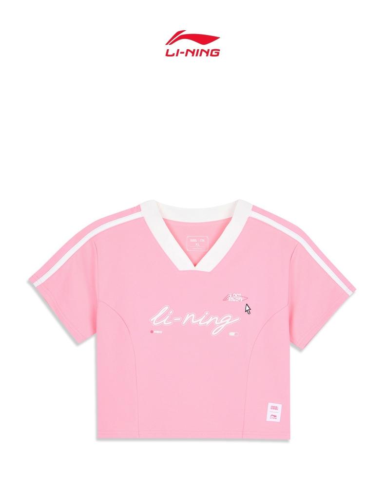 LI-NING李宁2025女子短袖文化衫针织无领短TAHSV638-1