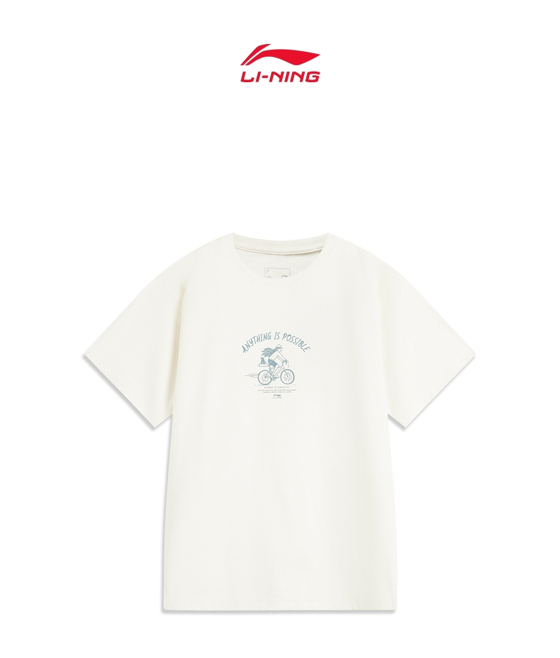 LI-NING李宁2025女子短袖文化衫针织无领短TAHSV640-1