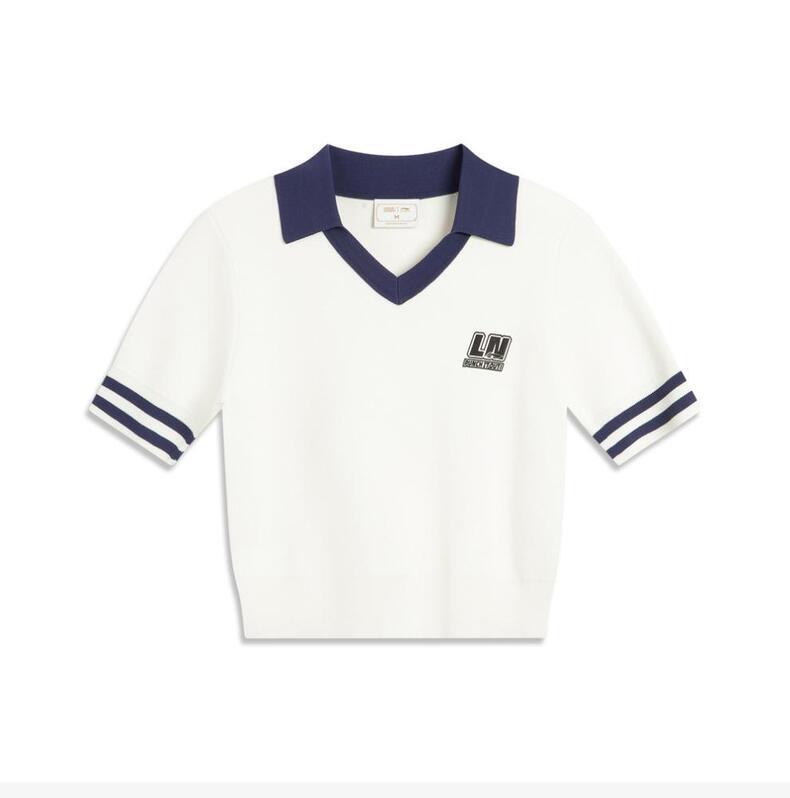 LI-NING李宁2025女子短袖编织衫针织无领短TAMBV326-1