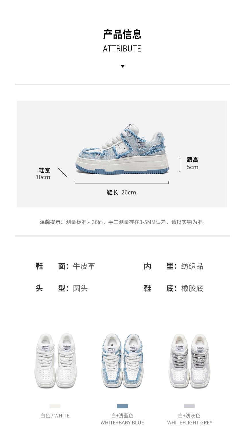 | 鞋头款式:圆头 | 鞋底材质:橡胶底 | 鞋面图案:拼色 | 内增高:无 | 鞋跟形状:厚底 |