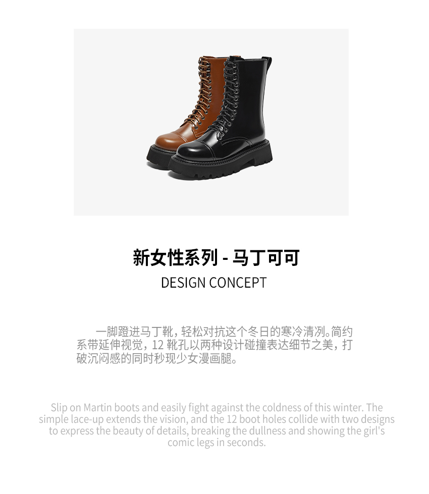 | 配跟:无 | 靴筒口围:30.5CM | 上市时间:2023年冬季 | 鞋类流行款式:马丁靴 | 鞋头款式:圆头 |