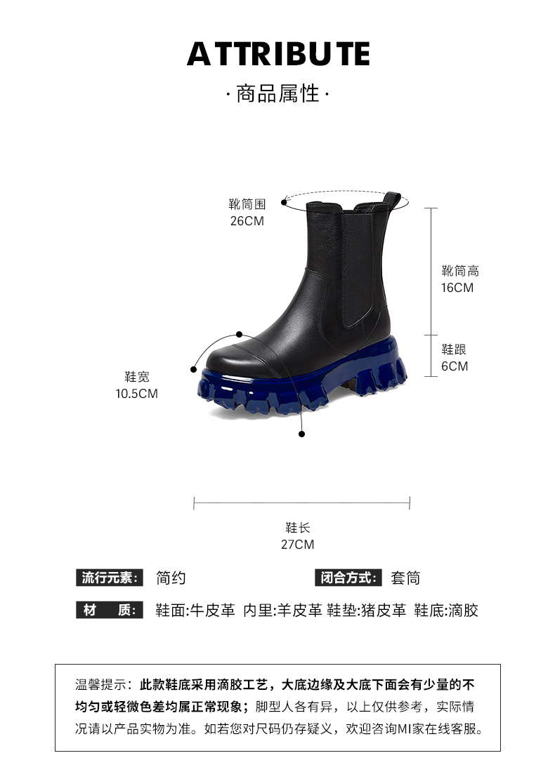 | 配跟:无 | 靴筒口围:26.5CM | 上市时间:2022年冬季 | 鞋类流行款式:切尔西靴 | 鞋头款式:圆头 |