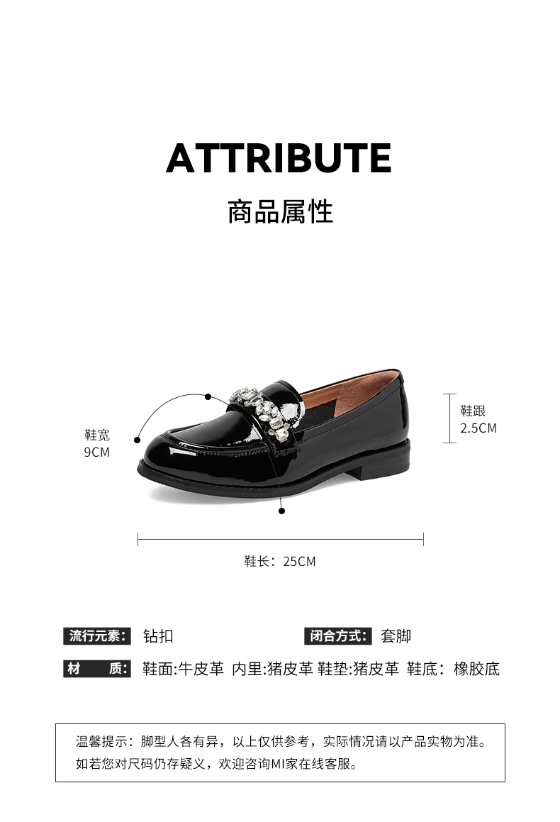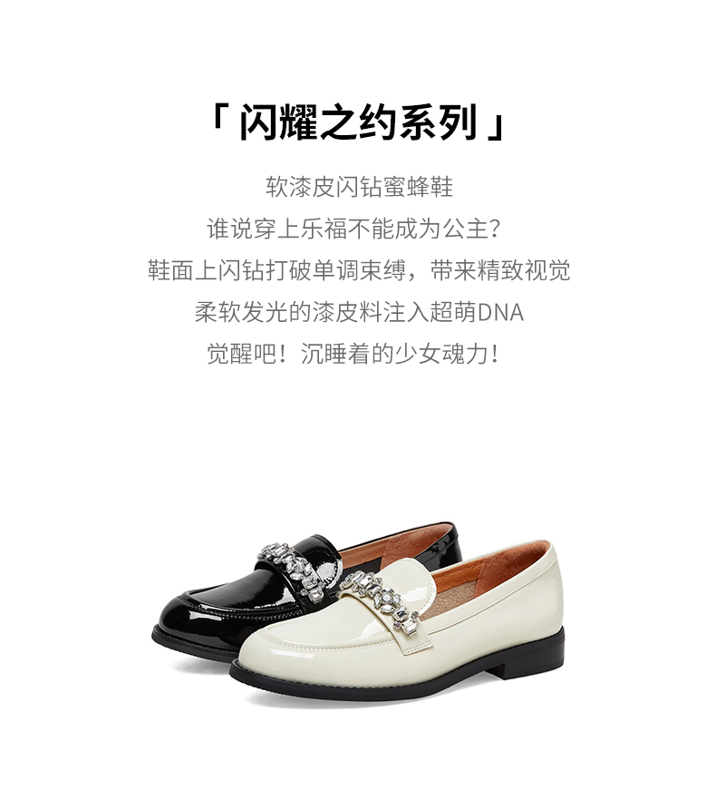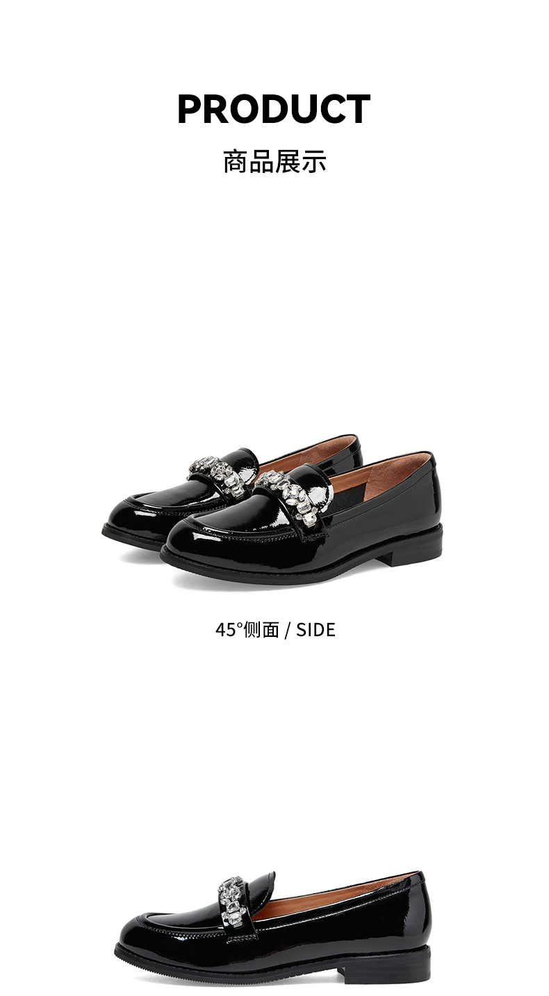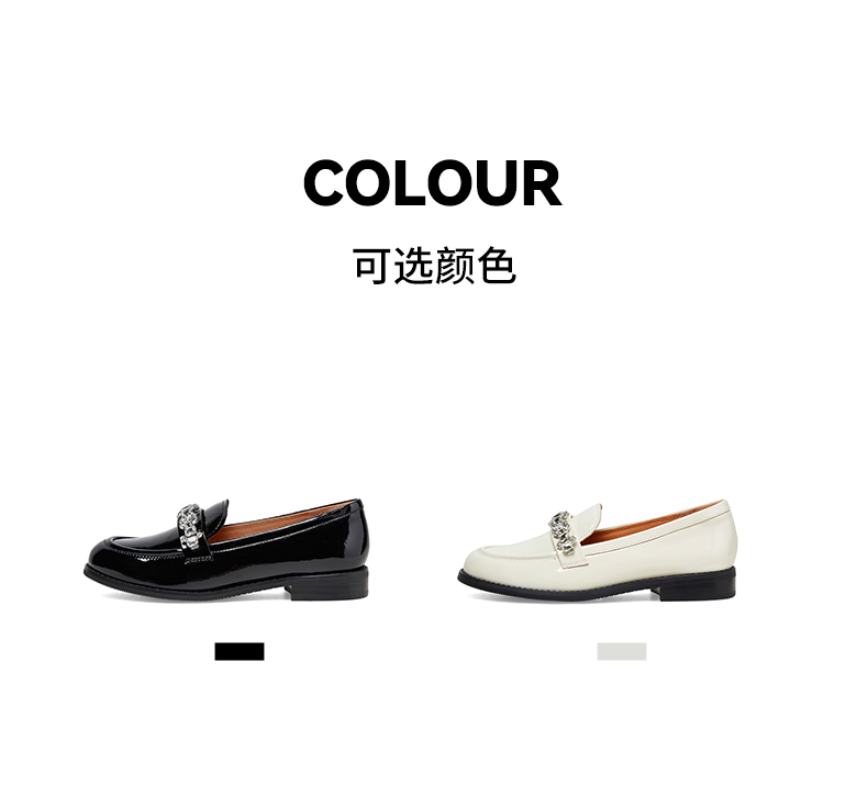 | 上市时间:2023年春季 | 鞋类流行款式:乐福鞋 | 鞋头款式:圆头 | 跟高范围:低跟鞋(小于3CM) | 鞋面图案:纯色 |