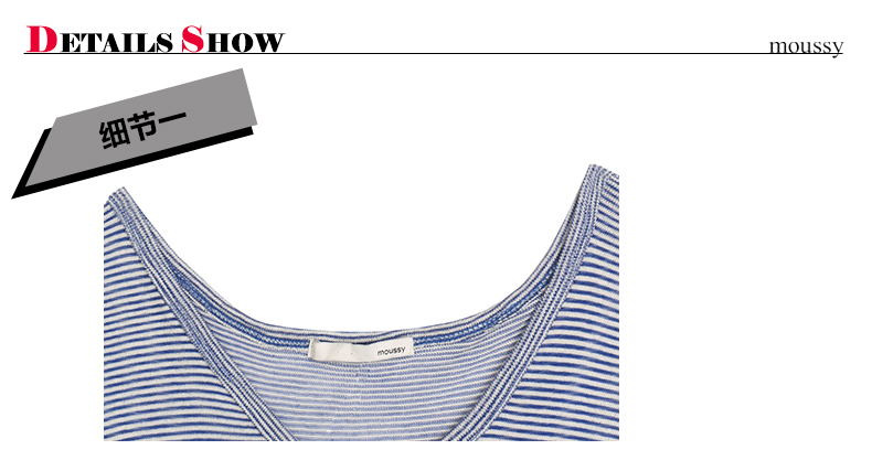 MOUSSY 专柜同款 女款蓝白条纹大圆领长款袖T恤0106ST80-0460