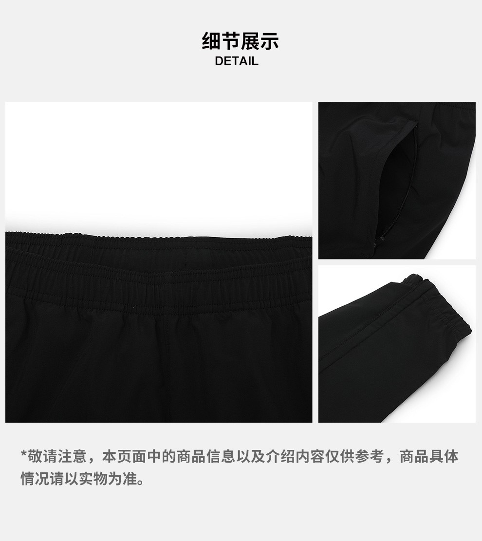 | 色系:黑色 | 货品来源:招商 | 服细款:梭织长裤 | 性别:男子 | 运动款式:长裤 |