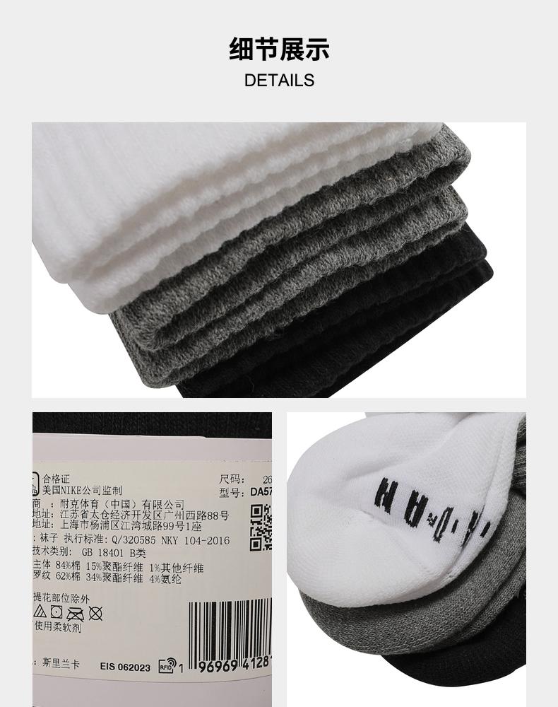 • NIKE耐克2024中性U J ESSENTIAL CREW 3PR -  144袜子优惠装DA5718-911