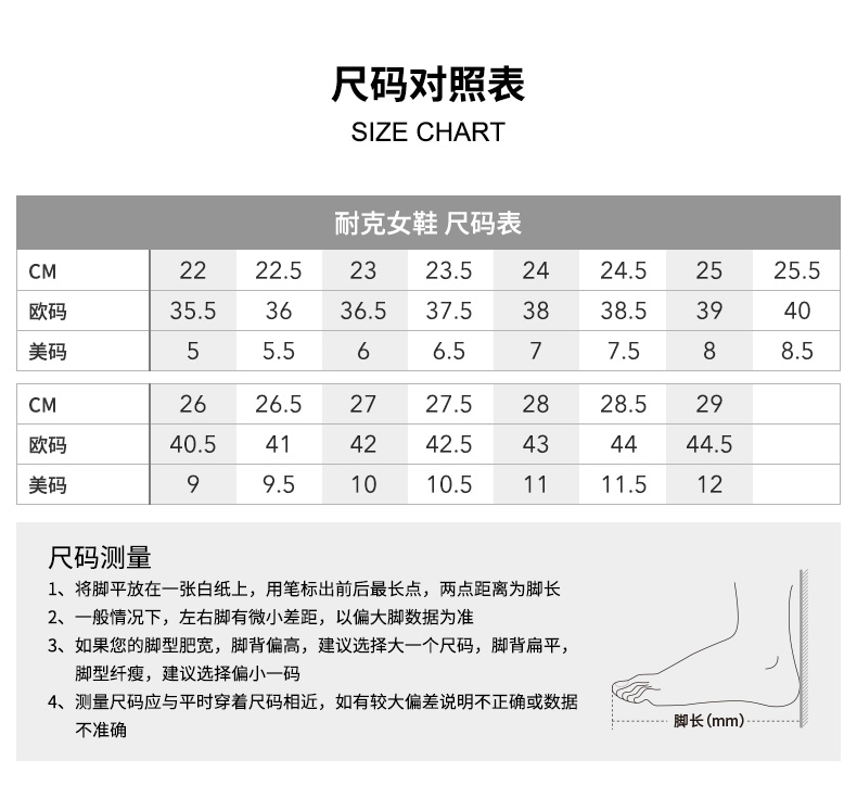 | CM | 23 | 23.5 | 23.5 | 24 | 24 | 24.5 | 25 | 25.5 | 26 | 26.5 | 27 | 27.5 | 28 | 28.5 | 29 | 29.5 | 30 | 31 | 31.5 | 32 | 32.5 | 33 | 33.5 | 34 |