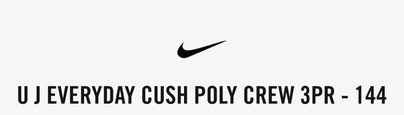 • NIKE耐克2025中性U J EVERYDAY CUSH POLY CREW 3PR -  144长袜优惠装DX9632-100