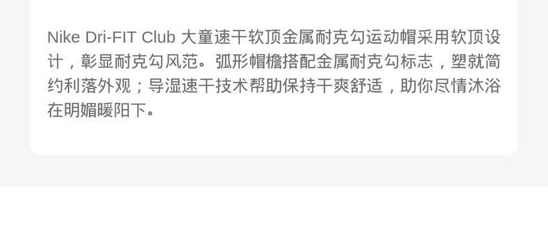 • NIKE耐克2025大童K NK DF CLUB CAP US CB MTSWSH弯沿帽FB5064-010