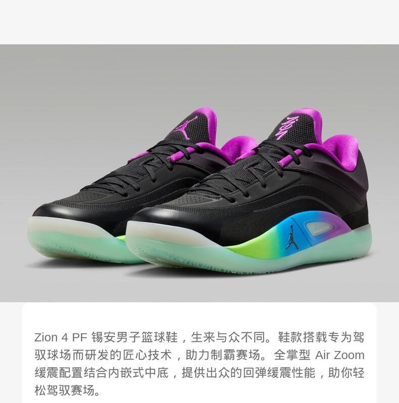 NIKE耐克2025男子JORDAN ZION 4 PF乔丹FD0591-401
