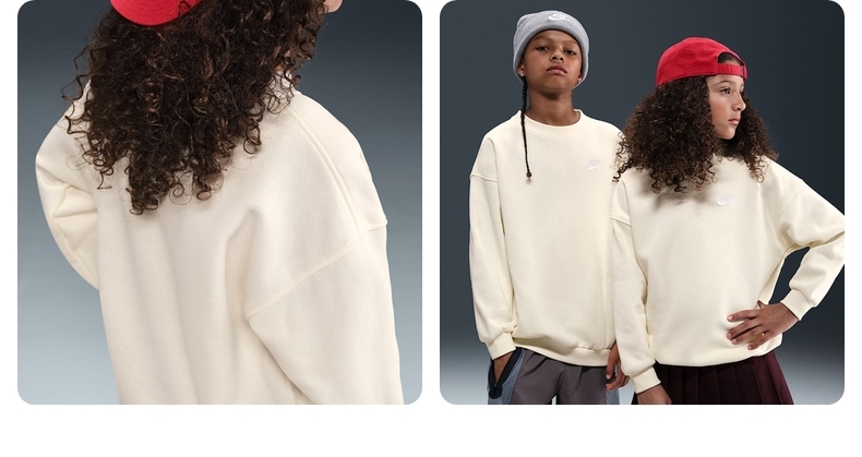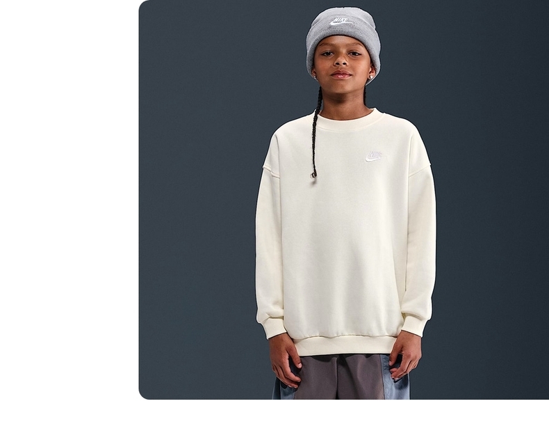 • Nike KidsNike Kids2025大童G NSW CLUB FLC OVRSZD CREW LBR针织无帽卫衣FD2923-047