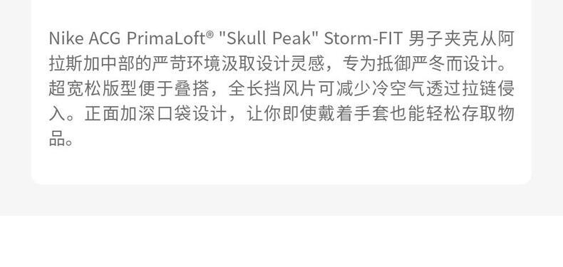 • NIKE耐克2026男子AS M ACG SF PRMLFT SKL PK JKT薄棉服FV8682-097