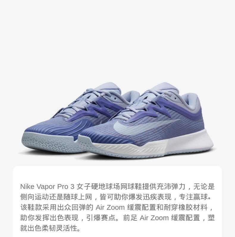 • NIKE耐克2025女子W ZOOM VAPOR PRO 3 HC网球FZ2158-401