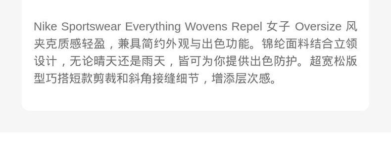 • NIKE耐克2025女子AS W NSW EVRTHNG WVN RPL UV梭织无帽外套HJ1000-547