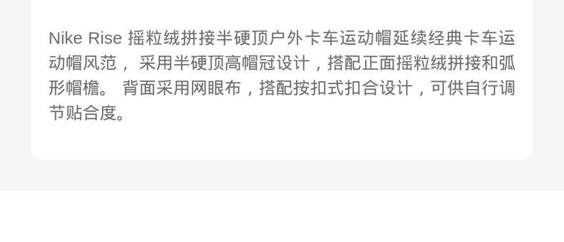 • NIKE耐克2025中性U NK RISE CAP TRKR OTDR H25 L弯沿帽HQ0373-010