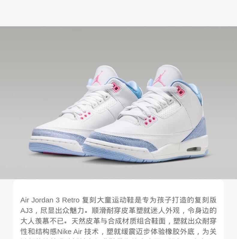 • JordanJordan2025女大童AIR JORDAN 3 RETRO GRL GG乔丹HQ0784-101