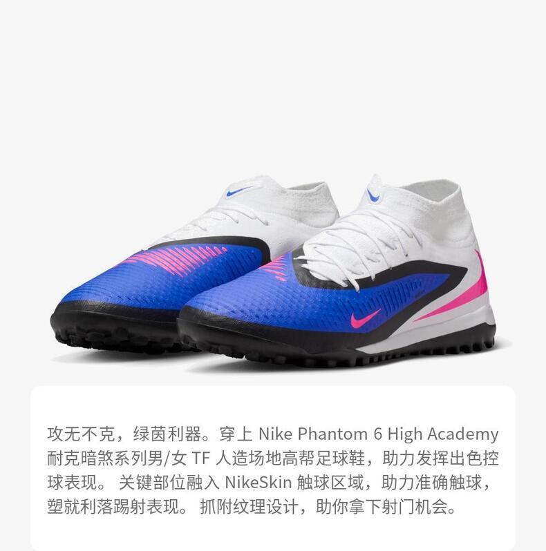 • NIKE耐克2026男子PHANTOM 6 HIGH ACAD TF足球HQ2277-446