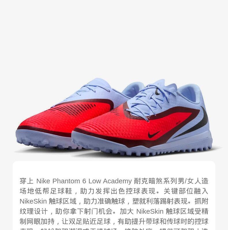 • NIKE耐克2025男子PHANTOM 6 LOW ACAD TF足球HQ2325-400