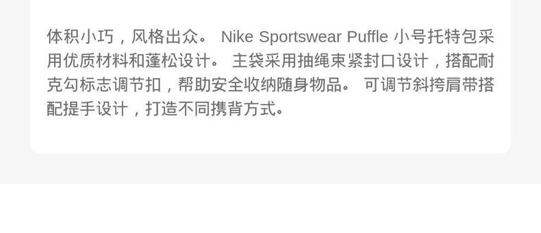 • NIKE耐克2025中性NK NSW PUFFLE TINY TOTE单肩包HQ6709-010