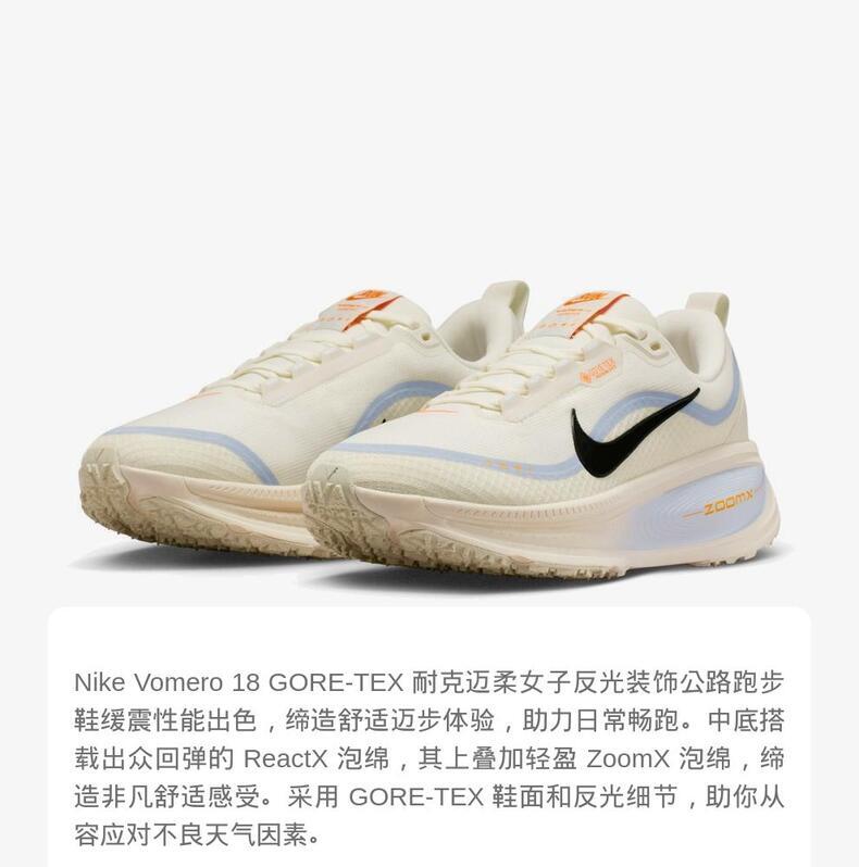 • NIKE耐克2025女子W NIKE VOMERO 18 GTX跑步HQ7002-100
