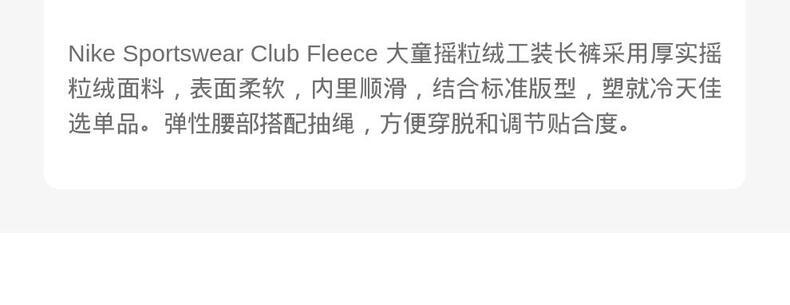 • Nike KidsNike Kids2025大童K NSW CLUB FLC CRGO PNT WZ针织长裤HV0386-010