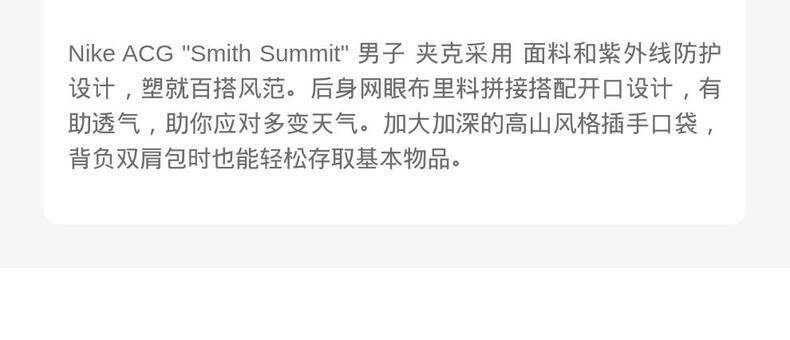 • NIKE耐克2025男子AS M ACG UV SMITH SUMMIT JKT梭织无帽外套HV0599-010