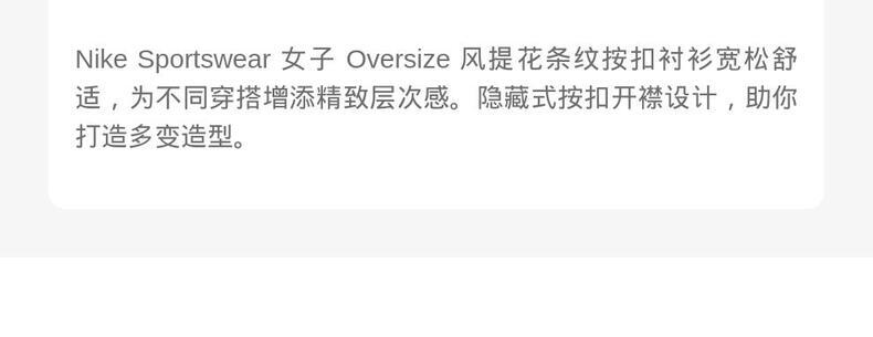 • NIKE耐克2025女子AS W NSW JQRD STRIPE BTTN DOWN梭织长袖衬衫HV1957-410