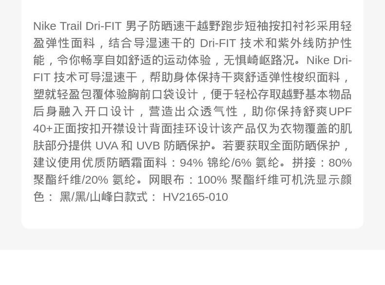 • NIKE耐克2025男子AS M NK DF UV TRAIL BTTN SHIRT短袖衬衫HV2165-010