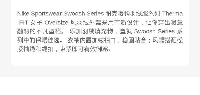 • NIKE耐克2025女子AS W NSW TF DWN SWSH PARKA厚羽绒服-短HV2752-010