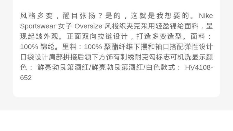 • NIKE耐克2025女子AS W NSW LOGO OS TRACK JKT梭织无帽外套HV4108-652