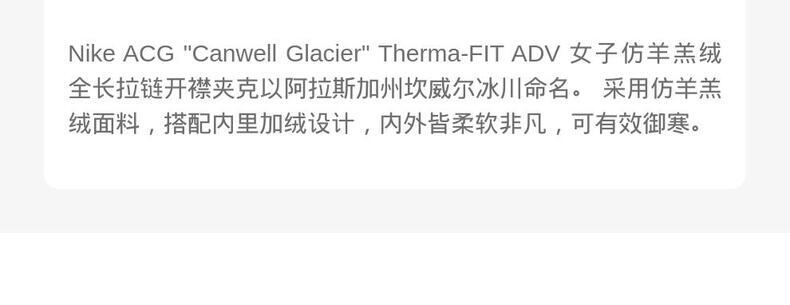 • NIKE耐克2025女子AS W ACG TFADV CANWELL GLCR FZ人造毛绒外套HV4706-364