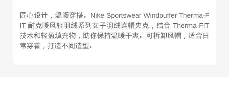 • NIKE耐克2025女子W NSW TF DWNFL NK ED WNDPFR薄羽绒服-短HV5106-072
