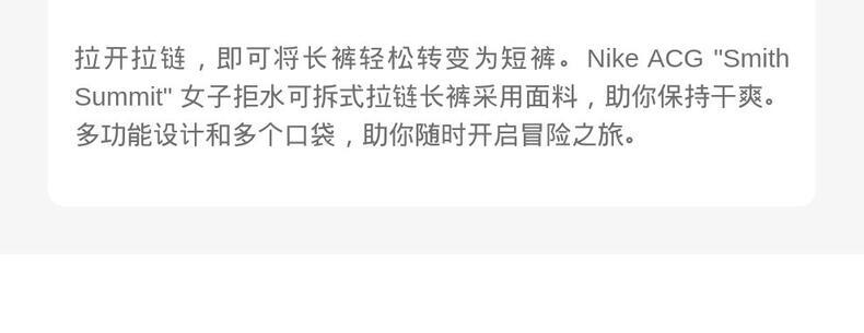 • NIKE耐克2025女子AS W ACG SMITH SUMMIT ZPOF PNT梭织长裤HV6392-010