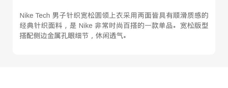 • NIKE耐克2025男子AS M NK TCH FLC CREW针织无帽卫衣HV6538-010