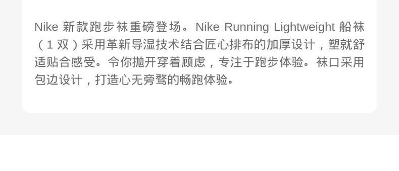 • NIKE耐克2026中性U NK LTWT RUN NS 1PR - 200短袜HV6931-100