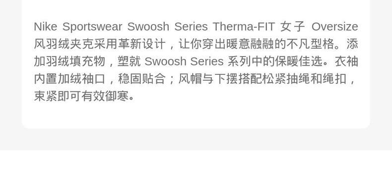 • NIKE耐克2025女子AS W NSW TF DWN SWSH PFR厚羽绒服-短IB2006-010