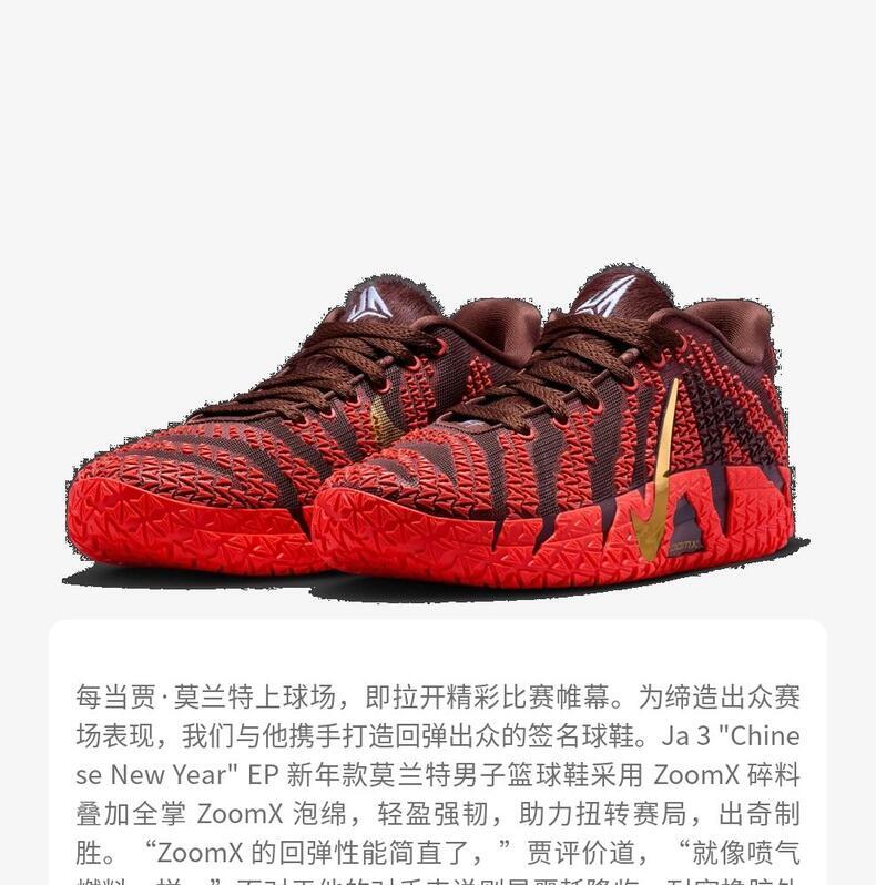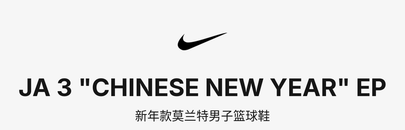 • NIKE耐克2026男子JA 3 CNY EP篮球IB6509-200