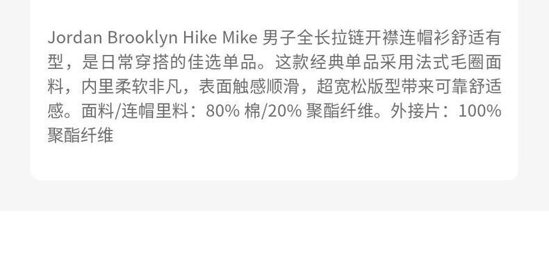 • JordanJordan2026男子AS M J BRK HIKE MIKE ZIP HD针织连帽外套IF1888-334