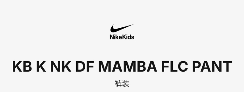 • Nike KidsNike Kids2026男大童KB K NK DF MAMBA FLC PANT针织长裤IF4999-010