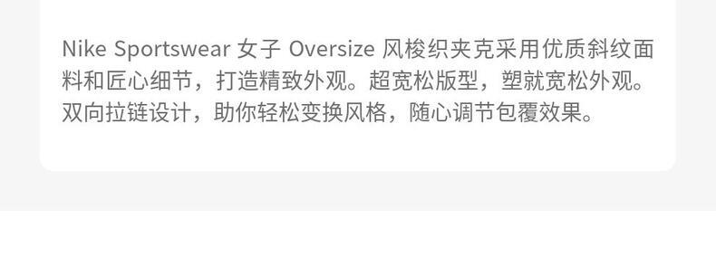 • NIKE耐克2026女子AS W NSW PG WVN JKT梭织无帽外套IF5452-010