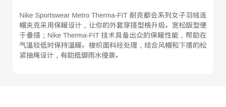 • NIKE耐克2025女子AS W NSW TF DWNFL METRO PFR厚羽绒服-短IH0728-100