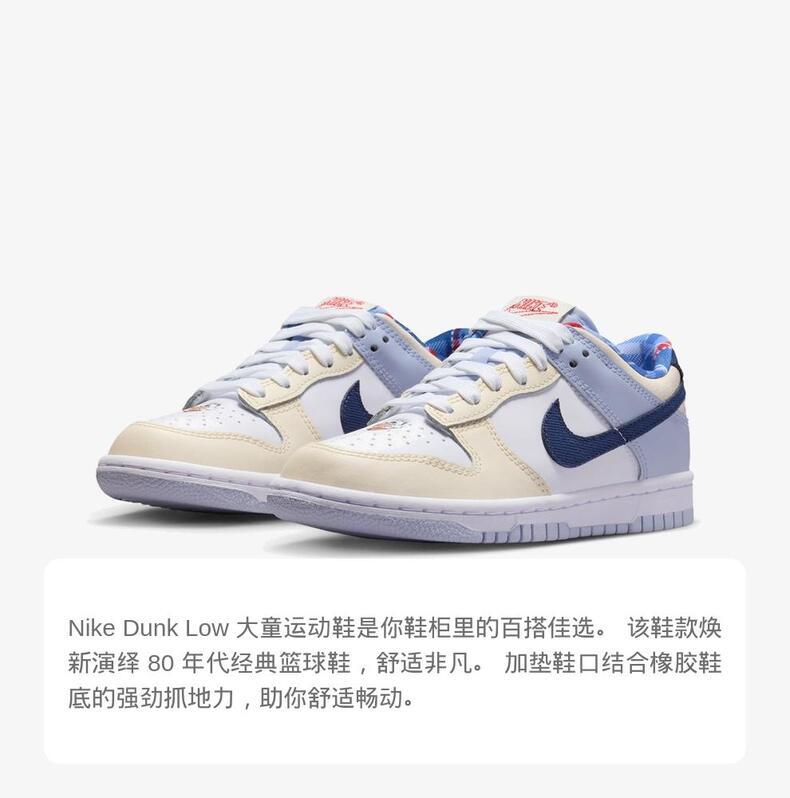 NIKE耐克2025男大童NIKE DUNK LOW (GS)儿童IH7343-141