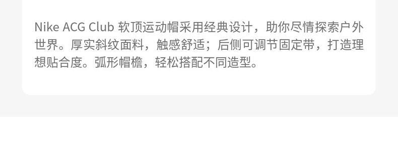 • NIKE耐克2026中性U NK CLUB CAP U CB ACG L弯沿帽IH9256-025