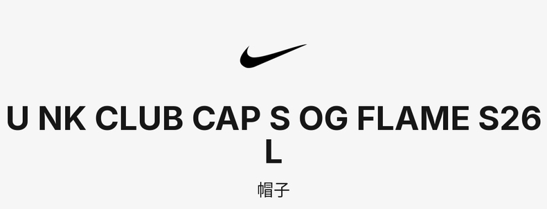 • NIKE耐克2026中性U NK CLUB CAP S OG FLAME S26 L弯沿帽IH9258-010