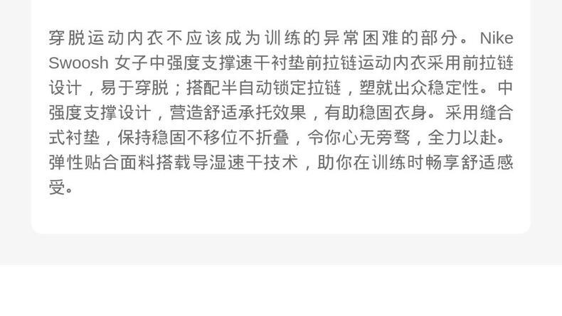 • NIKE耐克2025女子AS W NK DF SWSH MS FZ BRA GCELBRA-MII0466-047