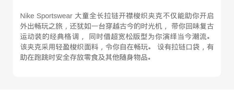 • NIKE耐克2025大童K NSW WVN FZ JKT GCEL梭织无帽外套II0471-057