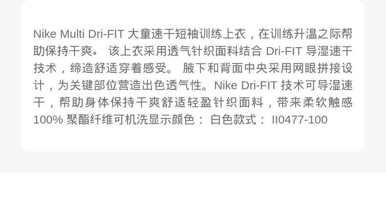 • NIKE耐克2025大童K NK DF MULTI SS TOP GCEL针织无领短TII0477-100
