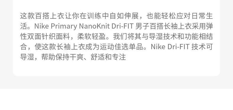 • NIKE耐克2026男子AS M NK DF UV PRMRY NANO LS CR针织无领长TII1303-486